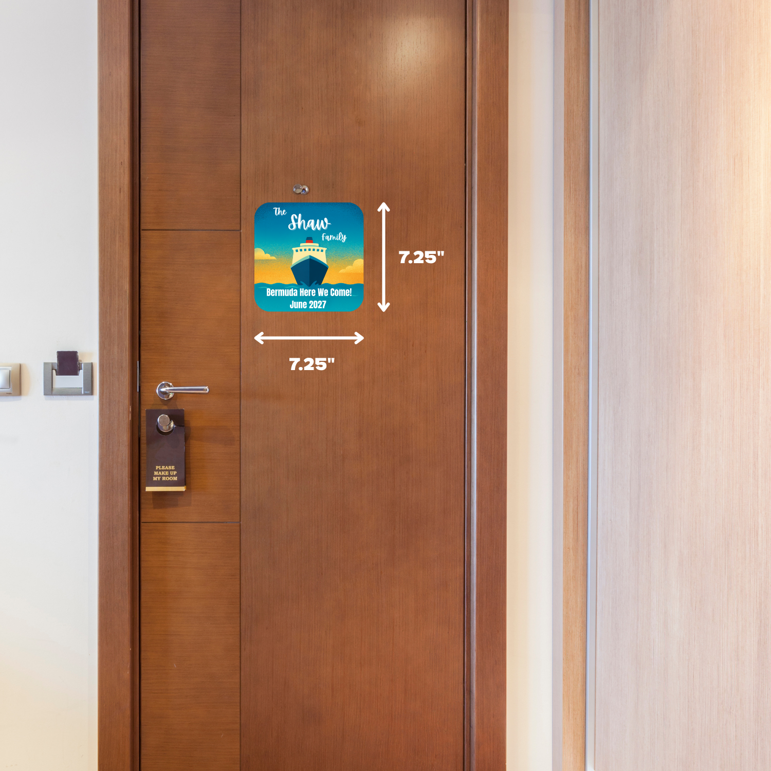 Add a splash of personality to your cabin door with this cruise door magnet! The fully customizable text is perfect for helping friends and family find your room easily and adds a fun, personal touch to your vacation!
